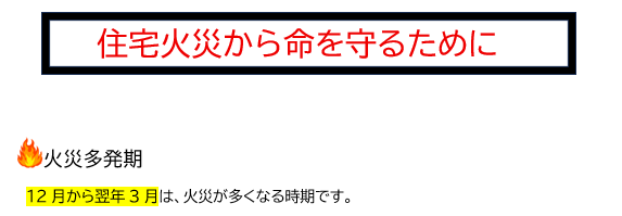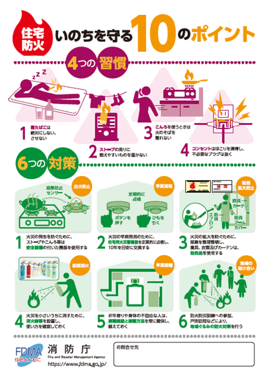 1人ひとりの心がけが、火災の発生を防ぎ、大切な命と財産を守ることにつながります。