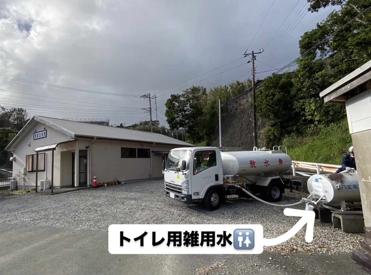 設置していた富士グラウンド、大賀郷公民館、大賀郷小学校のトイレ用水の水槽は廃止しました。三根地域で断水が継続しているため、新たに