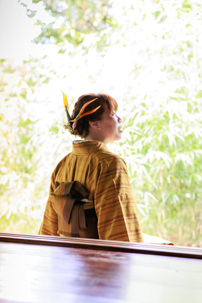 (イベントの際は黄八丈着物着用が基本です。