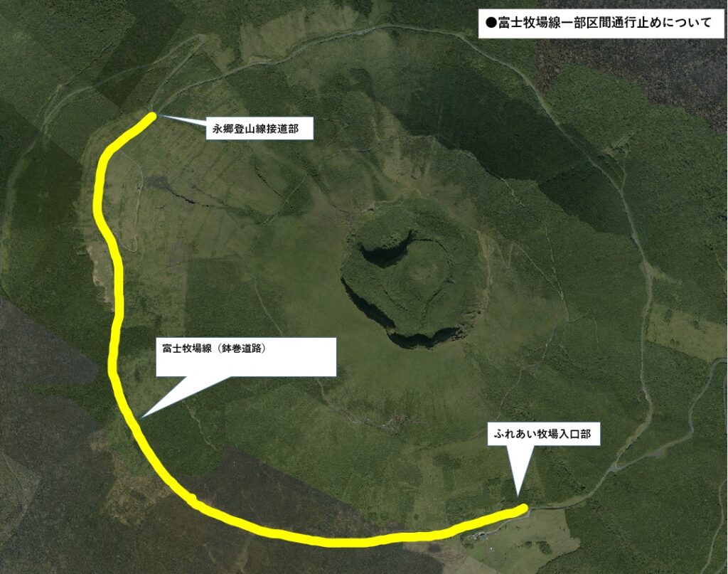 富士牧場線(鉢巻道路)の一部区間通行止めについて 令和7年12月25日(木)より、富士牧場線(鉢巻道路)の一部区間において、土砂流出のため通行止めといたします。利用者の皆様にご迷惑をおかけいたしますがご理解ご協力のほどよろしくお願いいたします。通行止め解除となった際には改めて掲載いたします。